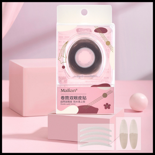تحتوي العلبة على شريط من اللاصقات اللي تجي مقصوصة بحسب شكل و دورة العين و يجي بكمية كبيرة تقريبا 600 قطعة لاصقة و تجي بمقاومة عالية للماء
