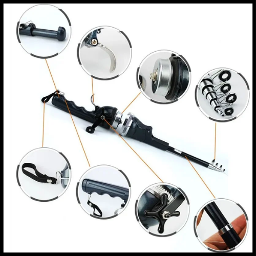 ماراح تحتاج لشراء البكرة والخيط والخطاف،، الخ، فهاي الصنارة تحتوي على بكرة مدمجة وجميع الملحقات الضرورية، فقط قم بثني القضيب وراح تكون جاهز للصيد